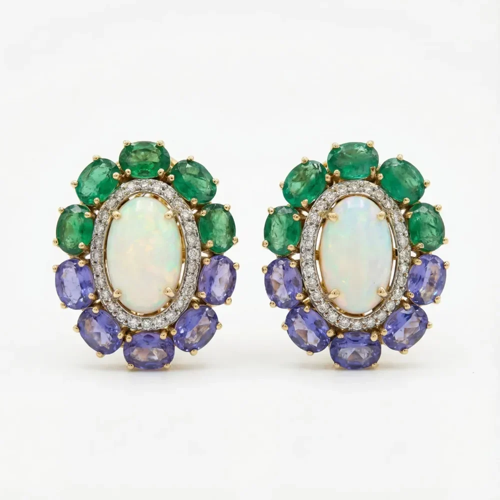 | Product Name | OPAL TANZANITE EMERALD POTA DIAMOND EARRINGS |