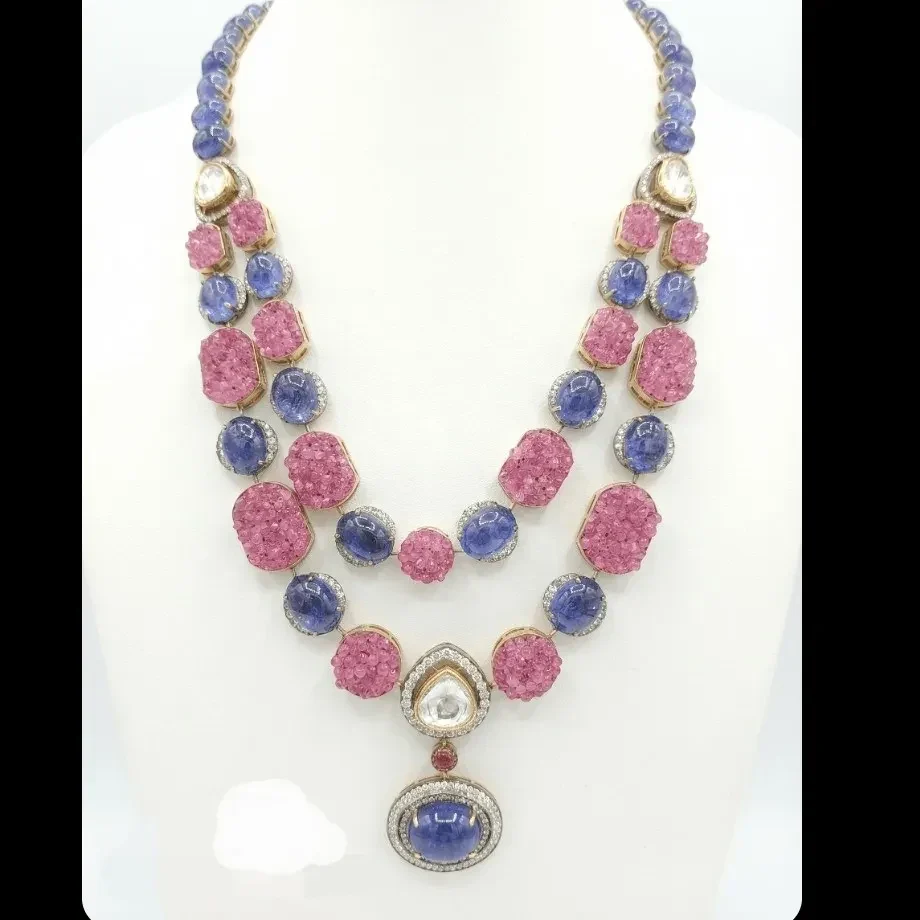 TANZANITE POTA TURMULLINE DIAMOND POLKI NECKLACE