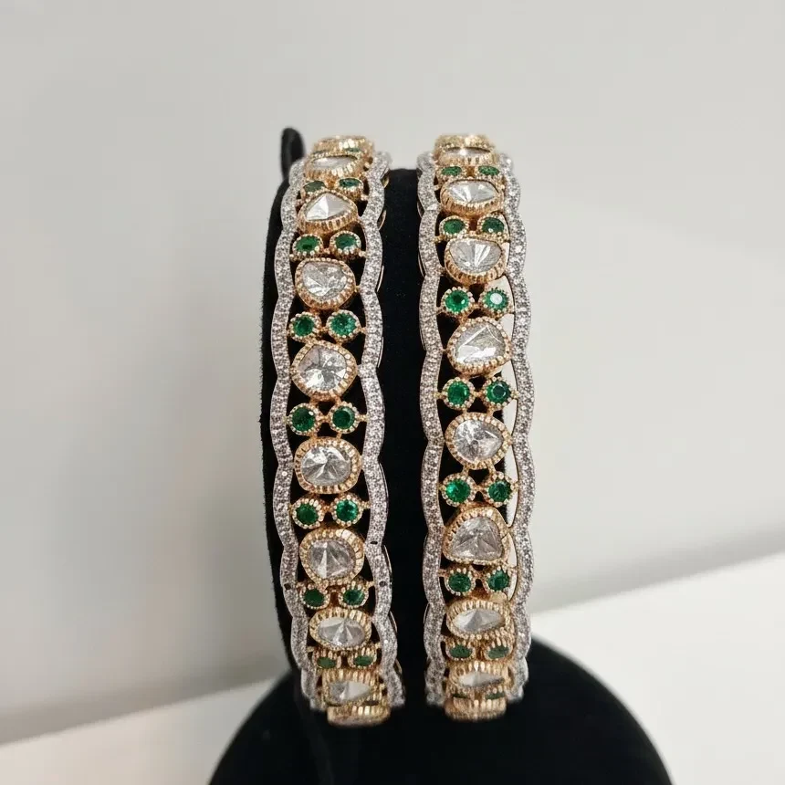 | Product Name | DIAMOND POLKI EMERALD ROUND BANGLE |