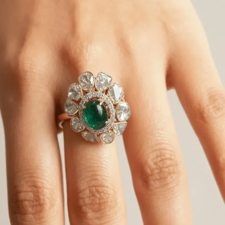 | Product Name | DIAMOND POLKI EMERALD POTA RING |