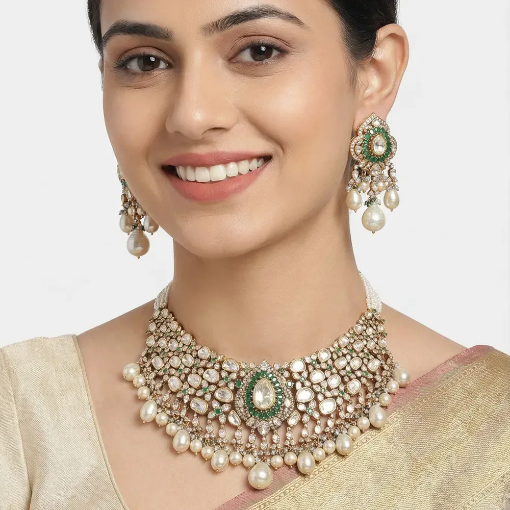 | Product Name | DIAMOND POLKI EMERALD PAN POTA SET |
